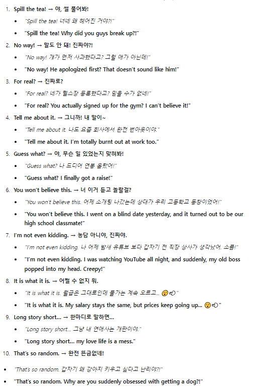 | [Day 28] 찐 원어민 바이브 영어표현 모음집 2탄! (0) | 2025.02.26 |